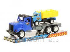 Tir z naczepą to zabawka posiadająca liczne funkcje. Ciągnik siodłowy wyposażony został w napęd frykcyjny - wystarczy pchnąć pojazd w przód, a on przejedzie koleje długości samodzielnie. Dodatkowo, na dachu kabiny znajdują się 4 przyciski, które uruchamiają efekty świetlne i dźwiękowe: dźwięk odpalania, klakson, silnik i cofanie. Twoje dziecko poczuje się, jakby naprawdę prowadziło ciężarówkę, transportując helikopter na miejsce akcji. Dodatkowo pojazdy posiadają gumowe obręcze kół, dzięki czemu nie ślizgają się po podłodze. Dodatkowe atrakcje które zapewnia pojazd to możliwość spinania i rozpinana ciągnika od naczepy oraz ruchoma opuszczana rampa załadunkowa z tyłu naczepy. Natomiast na helikopterze umieszczona została ruchoma wciągarka z hakiem, która umożliwia w ciąganie noszy z poszkodowanymi.