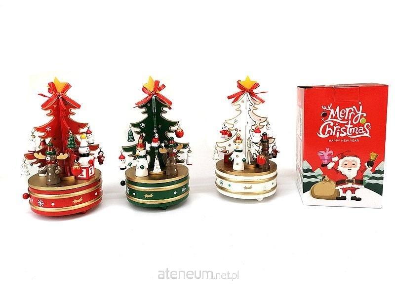 Karuzela pozytywka choinka drewniana, dźwięk, mix kolorów, 18x10,5cm
