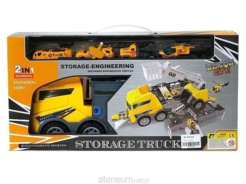 auto budowlane - baza transportowa, z podnośnikiem i wyrzutnią autek, 3 pojazdy metalowe; 40,5x10x19,5cm, W/B