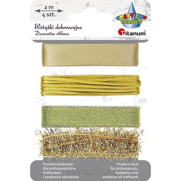 Wstążki tekstylne 15mm satynowa i brokatowa, foliowa 15mm, sznurek pleciony 2mm złote 4szt.