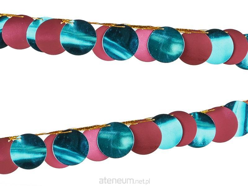 Girlanda metalizowana Kółka turkusowo-burgundowe, wysokość ok. 4 cm i długość ok. 2,2 m