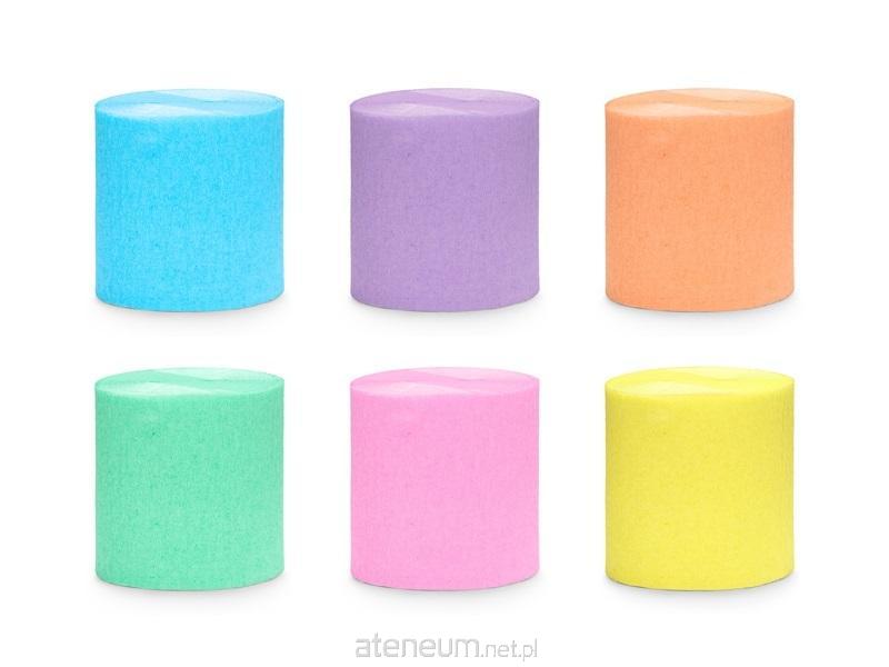 Krepa w kolorach pastelowych tęcza 6 sztuk, szerokość ok. 5 cm, długość ok. 10 m/rolkę(1 op. / 6 szt.)
