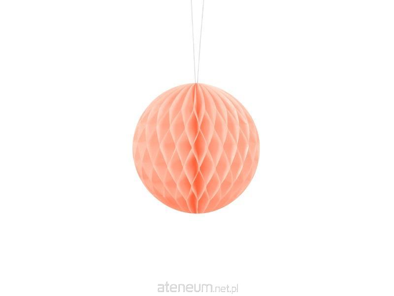 Kula bibułowa w kolorze jasnobrzoskwiniowym o średnicy około 10 cm. Produkt wielokrotnego użytku. Montaż przy pomocy spinacza.