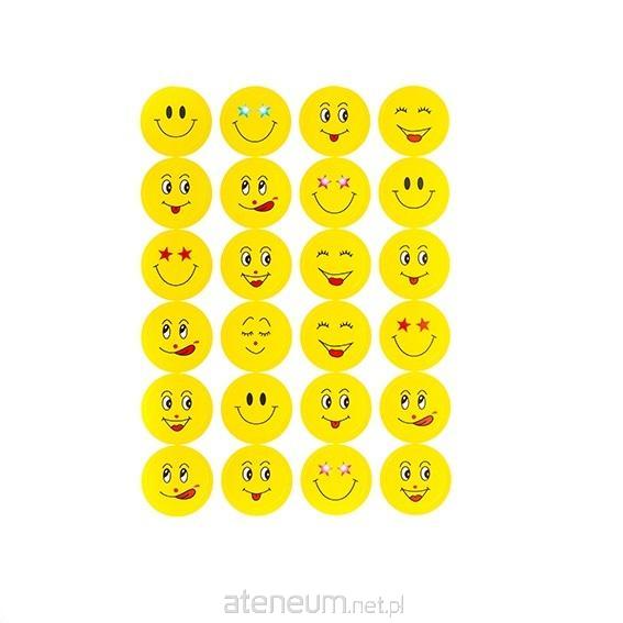 Zestaw naklejek motywacyjnych z uśmiechniętymi buźkami, w różnych wersjach (1,5 cm), w intensywnym, żółtym kolorze.