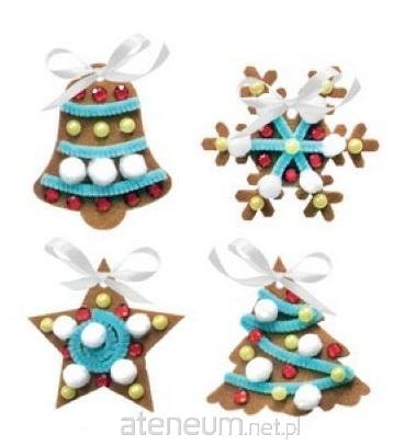 Zestaw kreatywny, dzięki któremu można stworzyć świąteczne pierniczki z filcu, do powieszenia na choince lub w innym, dowolnym miejscu.