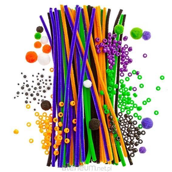 - Druciki kreatywne 30 cm 60 sztuk w czterech neonowych kolorach (pomarańczowy, zielony, fioletowy, czarny), które z łatwością można formować w kształty pająków, duchów i innych strasznych stworzeń.