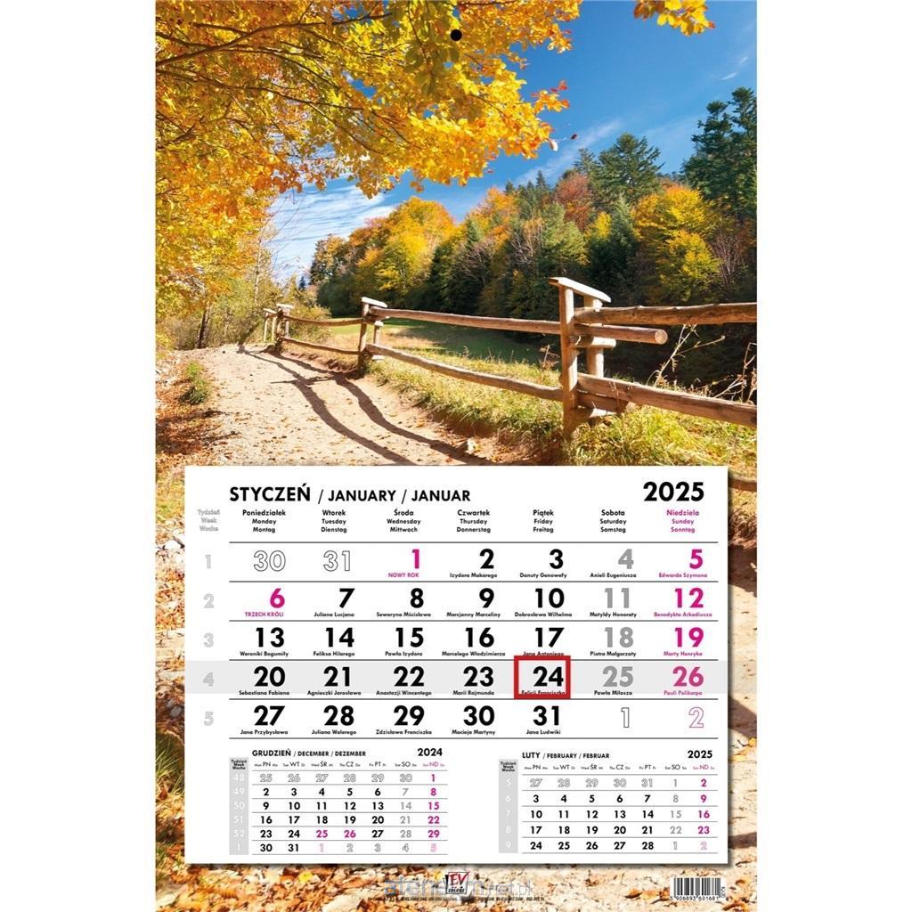 * kalendarz ścienny, jednodzielny z główką płaską z zadrukiem na całych pleckach