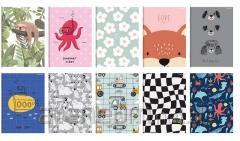 tematyczne naklejki, pozwalające na personalizację własnego notatnika