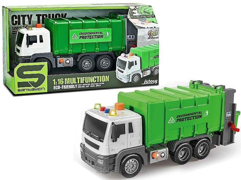 auto śmieciarka 1:16, światło, dźwięk, napęd na koło zam; 33x17,5x13,5cm, W/B