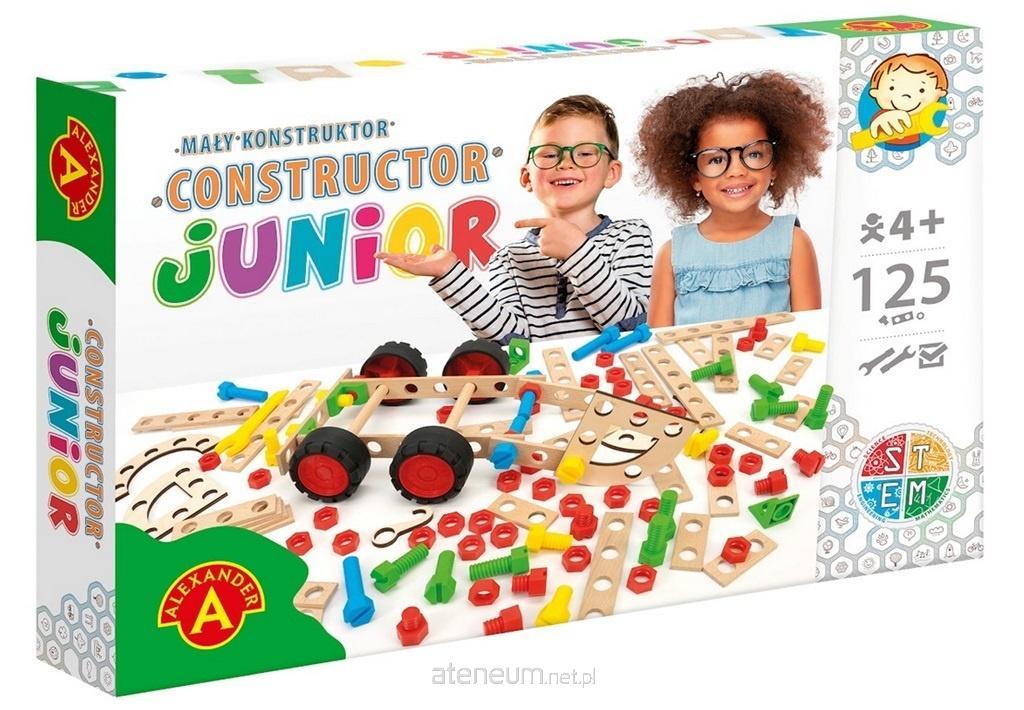 Mały Konstruktor Junior to ponadczasowa zabawka do samodzielnego montażu skierowana do dzieci w wieku od 4 lat. Zestaw składa się z drewnianych deseczek z dziurkami oraz kolorowych śrubek i łączników z tworzywa. Duże rozmiary elementów oraz uproszczona konstrukcja sprawiają, że dzieci już od najmłodszych lat mogą próbować sił w składaniu pierwszych pojazdów. Zestaw wyposażony jest w narzędzia idealnie dopasowane do małych rączek, dzięki którym malec może wielokrotnie skręcać i rozkręcać konstrukcję. Zabawka wspaniale wpływa na rozwój motoryki małej, rozwija cierpliwość oraz stymuluje wyobraźnię. Doskonale wspomaga naukę kolorów oraz liczenia. Wyjątkowa estetyka produktu i jakość wykonania umilają zabawę. Wszystkie komponenty wchodzące w skład produktu wytwarzane są w fabryce Alexandra.