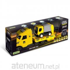 Magic Truck Basic pojazdy buggy to doskonały prezent dla najmłodszych zafascynowanych jazdą po piaszczystych bezdrożach. Ciężarówka - lora z odpinaną, skrętną naczepą może służyć do przewożenia autek typu buggy. Realistycznie odwzorowuje prawdziwy pojazd - wyposażona jest w najazdy i wciągarkę, dzięki którym samochody buggy wciągane są na lawetę. Naczepę można przyczepić do kabiny na dwa sposoby, dzięki temu auto może osiągnąć długość 110 cm. Dodatkowo posiada ona chowane nóżki podporowe, przez co może stać się samodzielnie stojącą przyczepą. W zestawie znajdują się 2 autka buggy. Całość wykonana jest z wysokiej jakości, trwałego i wytrzymałego tworzywa sztucznego odpornego na różne warunki atmosferyczne, co pozwala na zabawę oraz przechowywanie zabawki zarówno w domu, jak i na dworze. Magic Truck Basic pobudza wyobraźnię dziecka, pomaga doskonalić jego rozwój motoryczny i umiejętności manualne, a fluorescencyjne elementy pobudzą ciekawość. Do twórczej zabawy i jazdy po pustynnych bezdrożach dziecko może zaprosić swoje rodzeństwo bądź kolegów i koleżanki. Zabawa w grupie pozwoli nawiązać dziecku relacje społeczne, poznać strukturę i zasady, jakie panują w grupie oraz nauczyć się współpracy. duży (długość 78 cm), wytrzymały i trwały pojazd realistycznie odwzorowujący prawdziwą ciężarówkę - lawetę zestaw wyposażony w odpinaną naczepę, najazdy oraz boczne burty, 2 autka sportowe przeznaczona dla dzieci 3