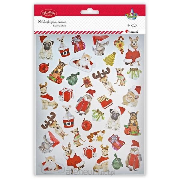 Naklejki papierowe 2 plansze świątecznie ubrane psy i koty 72szt.