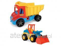 Gigant Wywrotka w kolorze biało-żółto-seledynowym to fantastyczny, duży samochód o długości 55 cm. Pojazd posiada zaczep z przodu (możliwość zamontowania sznurka, linki do ciągnięcia) i z tyłu. Ogromna wytrzymałość (nośność do 150 kg) gwarantuje wspaniałą zabawę. Solidna i trwała, wielofunkcyjna konstrukcja rozpali serca wszystkich małych wielbicieli pojazdów ciężarowych i będzie im służyć latami. Wywrotka posiada otwierany kiper z wygodnym uchwytem, na którym dziecko może przewozić, co tylko zechce. Dzieciaki pokochają możliwość ładowania, rozładowywania i przewożenia ulubionych zabawek, a także zwariowanej jazdy w domu i ogrodzie. Zabawa Wywrotką Gigant Truck pobudzi wyobraźnię najmłodszych, wspiera umiejętności manualne i koordynację ruchową dziecka. Zabawka wykonana jest z najwyższej jakości materiałów bezpiecznych dla dzieci. Nadaje się do zabawy zarówno w domu, jak i na świeżym powietrzu.