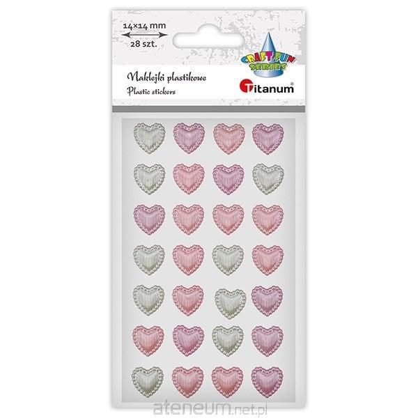 Naklejki plastikowe serca 14x14mm białe, bladoróżowe, liliowe 28szt.