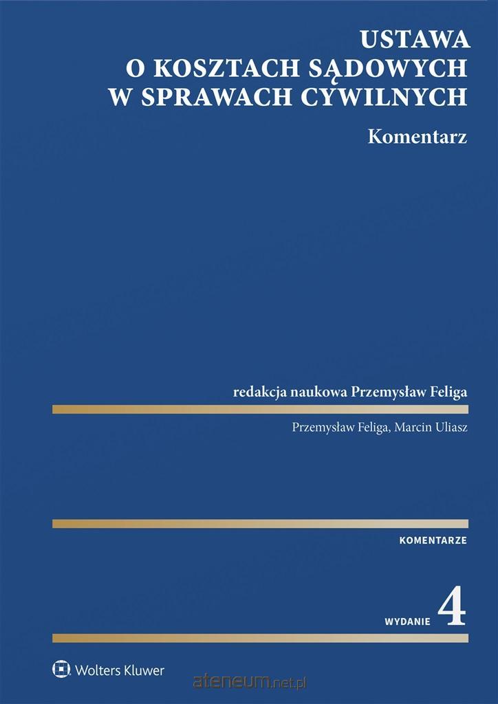 Książka otwarta.png [5 KB]Książka stanowi kompleksowe kompendium wiedzy z zakresu ustawy o kosztach sądowych w sprawach cywilnych napisane przez praktyków z doświadczeniem orzeczniczym w rozstrzyganiu w tego rodzaju sprawach. Autorzy w sposób przystępny i wszechstronny przedstawili rozwiązania problemów związanych z interpretacją przepisów komentowanej ustawy, które wywołują wiele wątpliwości i rozbieżności w praktyce stosowania prawa. Zawartość opis ebooka.png [20 KB]Komentarz zawiera omówienie najnowszych zmian do ustawy o kosztach sądowych w sprawach cywilnych, dotyczących np: wprowadzenia opłaty stałej od pozwu w sprawach o uznanie czynności prawnej dłużnika dokonanej z pokrzywdzeniem wierzycieli - wprowadzenia nowych opłat od wniosku o zawezwanie do próby ugodowej, - zmiany opłat w sprawach pracowniczych, - wynagrodzenia oraz zwrotu kosztów dla kuratora sądowego. W publikacji znajduje się również szerokie odniesienie do piśmiennictwa (komentarzy, monografii, artykułów, glos i innych opracowań) oraz judykatury Trybunału Konstytucyjnego, Sądu Najwyższego, licznych publikowanych oraz niepublikowanych orzeczeń sądów powszechnych, a także Europejskiego Trybunału Praw Człowieka i Europejskiego Trybunału Sprawiedliwości. Adresaci.jpg [8 KB]Książka jest przeznaczona dla wszystkich osób uczestniczących w postępowaniach sądowych w sprawach cywilnych, w szczególności: sędziów, adwokatów, radców prawnych, prokuratorów, referendarzy sądowych, asystentów sędziów. Publikacja będzie także przydatna dla aplikantów Krajowej Szkoły Sądownictwa i Prokuratury oraz aplikantów adwokackich, radcowskich, komorniczych.