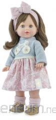 Marina & Pau 336 - oryginalna lalka hiszpańska na prezentCuco ubrany jest w śliczne zielono-szare śpioszki z kapturem. Przyciągają wzrok urocze długie uszy oraz wzór w słodkie króliczki. Ubranko zapinane z tyłu na rzep można z łatwością zdjąć a lalę przebrać lub zabrać do zabawy w kąpieli. Wyjątkowa winylowa lalka hiszpańska zapakowana jest w pięknie prezentujący się otwarty firmowy kartonik z logo marki w postaci mniszka lekarskiego. Zabawka posiada wszystkie wymagane certyfikaty bezpieczeństwa CE. Świetnie nadaje się na upominek. Do kompletu proponujemy dziewczynkę o imieniu Betty 0326.