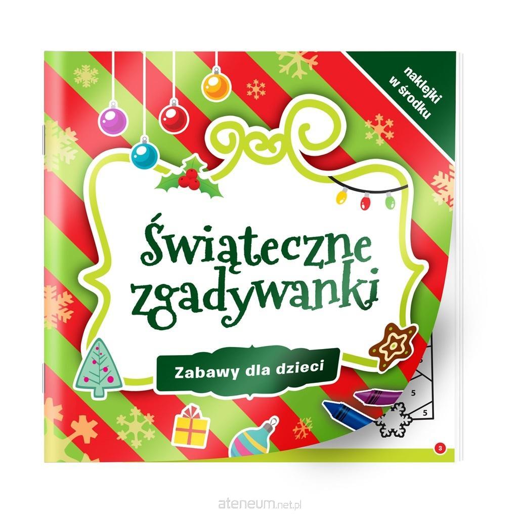 Świąteczne zgadywanki to zbiór łamigłówek dla dzieci. Publikacja została stworzona z myślą o najmłodszych czytelnikach, ponieważ wykorzystuje zabawę łącząc ją z elementami edukacyjnymi dostosowanymi do wieku młodego odbiorcy. Dzięki takiemu zabiegowi w przyjemny sposób uczy kreatywności, zdolności samodzielnego myślenia oraz rozwija umiejętności plastyczne. Książeczka wprowadza dziecko w tematykę Świąt Bożego Narodzenia.