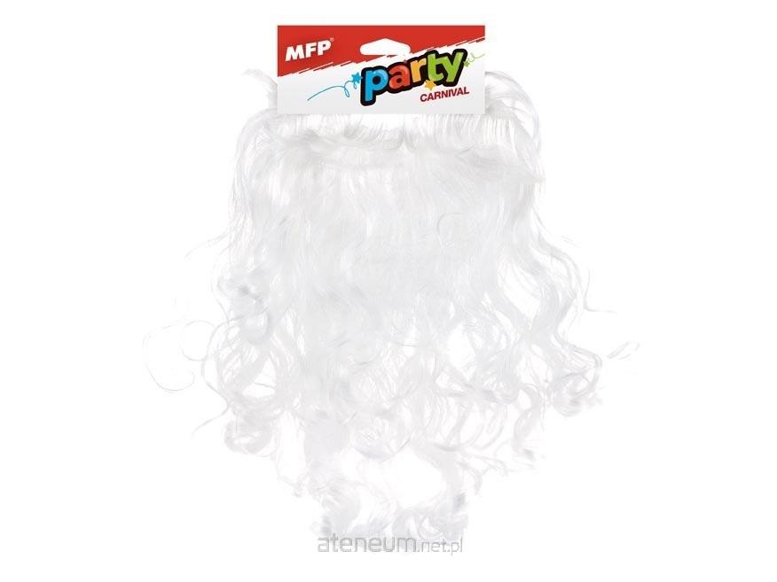 Biała broda Świętego Mikołaja z gumką i otworem na usta.