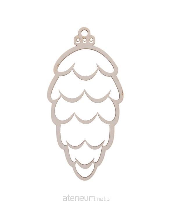 Drewniana bombka w kształcie szyszki biała. Wysokość całkowita 9cm, szerokość 4,5cm. W opakowaniu 3szt
