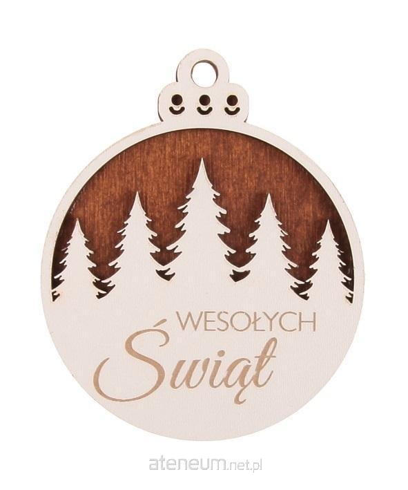 Drewniana bombka LUX 3D z napisem Wesołych Świąt. Średnica 8cm, wysokość całkowita 10cm. W opakowaniu 3szt