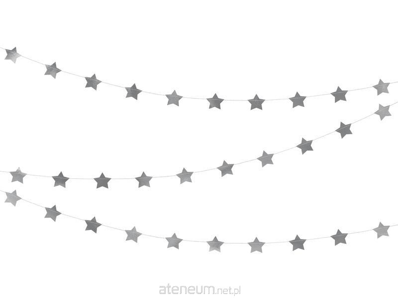 Przeszywana girlanda Gwiazdki wykonana z folii w kolorze srebrnym lustrzanym, długość ok. 3,6 m, wysokość ok. 5 cm.