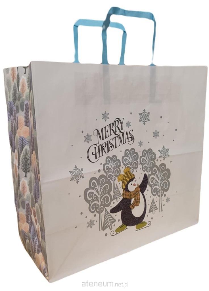 Torebka biała KRAFT 320x300x150 Święta Pingwin