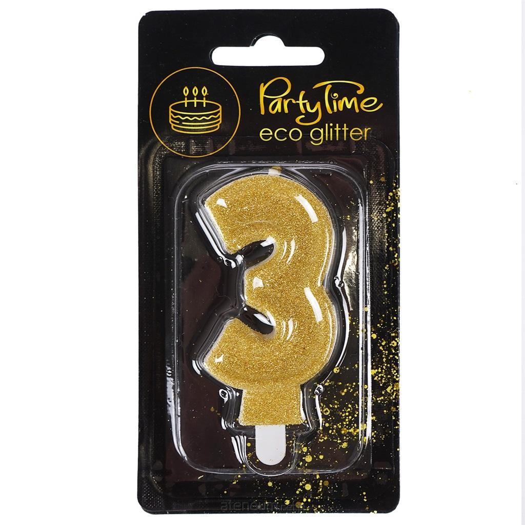 Świeczka cyferka 3 Beauty&Charm metalik złota 8cm