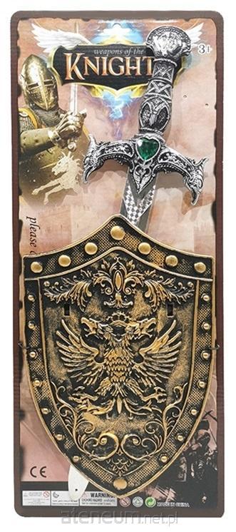 Opis: dł. miecza 49 cm, tarcza 28 x 20 cm, wym. opak. 53 x 22,4 cm, 3+