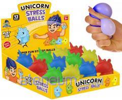 Opis: 12 szt/disp, śr. piłki 7 cm, piłka składa się z plątaniny gumowych pasków, można ją odbijać, gnieść, rzucać, wym. disp. 29,5 x 21,5 x 7,5 cm, 3+