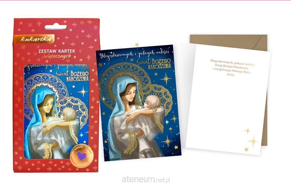 Zestaw kartek świątecznych ZKA-003 Zestaw zawiera 10 jednakowych kartek świątecznych z kopertami. Karnety są kolorowe i uszlachetnione metalizowaną folią hot-stamp. Ten zestaw to idealne rozwiązanie, aby mieć zawsze pod ręką zapas pięknych kartek świątecznych, gotowych do wręczenia bliskim i znajomym w okresie świątecznym. Kartki zawierają życzenia w środku oraz dopasowaną kopertę. Specyfikacja: Wymiary kartki: 10 x 15 cm (po złożeniu) Wymiary opakowania: 11,2 x 1,5 x 20,5 cm (długość x szerokość x wysokość) wnętrze: życzenia w środku zdobienia: metaliczna folia okazja: BN