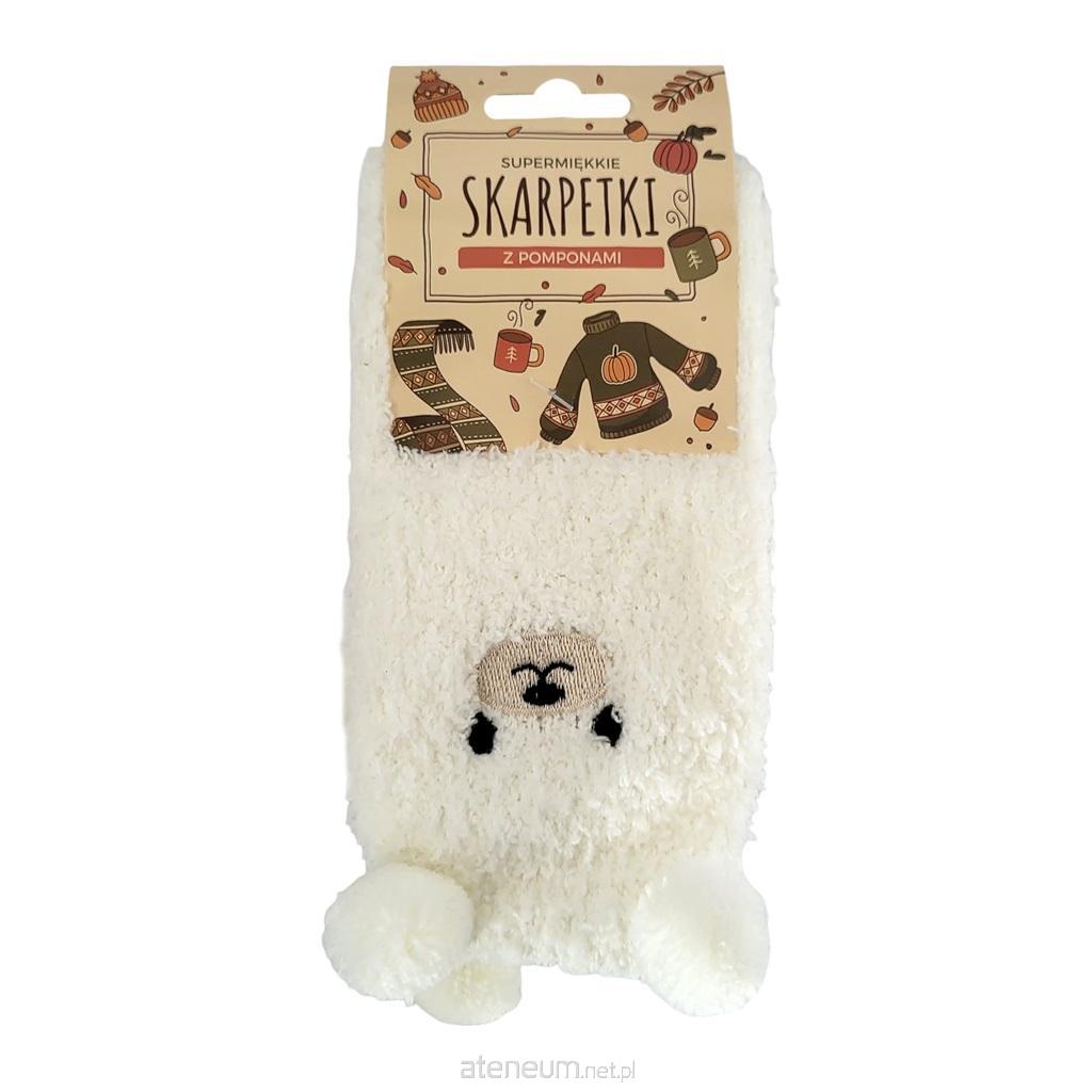 Skarpety z pomponami. Ecru. Materiał: tworzywo sztuczne.
