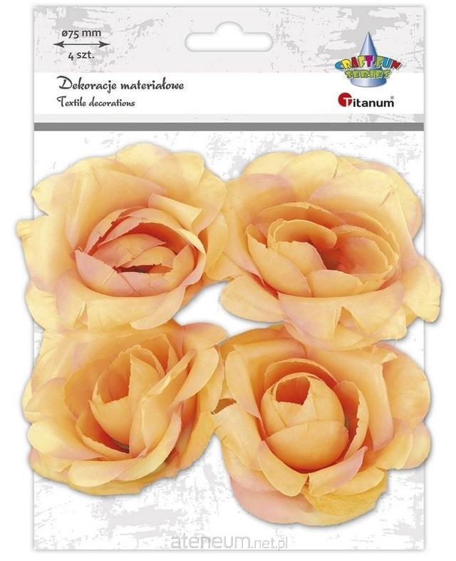 Materiałowe róże 3D średnica 75mm herbaciane na druciku 4szt.