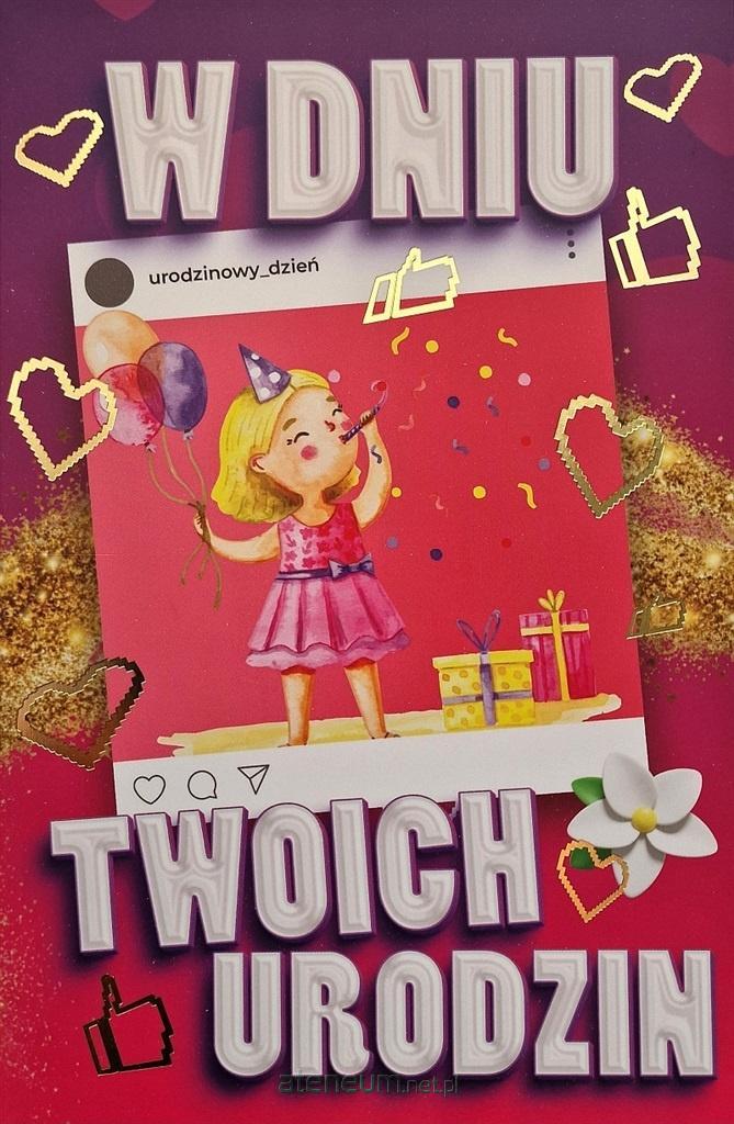 Karnet 2k. Klasyczny karnet na urodziny dla dziewczynki. Uszlachetniony wysokiej jakości hotstampingiem ( złocenie ). Karnet zawiera życzenia.