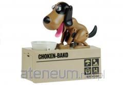 Skarbonka piesek Grafitowy Wesoły piesek jest bardzo głodny i marzy o jedzeniu. Nie może powstrzymać się przed zjedzeniem czegokolwiek, co wpadnie do jego miseczki. Wrzuć tam monetę i obserwuj, jak wpada w szaleństwo jedzenia, zachłannie szukając smakołyku. Ta oryginalna, interaktywna skarbonka jest niespotykanie ciekawa. Ruchomy piesek pomoże zrozumieć dziecku, że oszczędzanie pieniędzy jest bardzo istotne i posiada same zalety - a z wykorzystaniem prezentowanej skarbonki jest bardzo widowiskowe i zabawne. Ta rewelacyjna skarbonka składa się z dużej skrzyni, będącą pojemnikiem na pieniądze dziecka, ruchomej miski z otworem na monetę i energicznego psa, który porusza oczkami, uszkami, językiem i ogonem, generując przy tym dźwięki. Beżowa skrzynka ozdobiona jest napisem Choken-Bako oraz czterema obrazkami, natomiast piesek siedzący na jej pokrywie ma różowy język, czerwony nosek i ciemne, grafitowe umaszczenie. W dolnej części zabawki znajduje się miejsce na dwie baterie 1,5 V AA, które są konieczne do uruchomienia pieska, oraz przełącznik ON/OFF. Z przodu skrzynki umieszczona jest pokrywka, ułatwiająca opróżnienie skarbonki i wydanie oszczędności na marzenie dziecka. Zabawka przeznaczona jest dla wszystkich dzieci powyżej 6. roku życia, zapakowana jest w kartonowe pudełko z witrynką. Uważamy, że skarbonka-piesek w kolorze grafitowym jest doskonałym połączeniem nowoczesnego wzornictwa z wielofunkcyjnością. Piesek nie tylko przechowa pieniądze dziecka, ale będzie świetnie prezentować się na jego biurku lub w pokoju, zachęcając do wrzucenia kolejnej monety. Wymiary skarbonki: - cała skarbonka: 15 cm x 8 cm x 16,5 cm, - skrzynia: 15 cm x 8 cm x 6,5 cm, - pies: 13 cm x 5 cm x 12 cm. Wymiary opakowania: - 20 cm x 18 cm x 8,5 cm.
