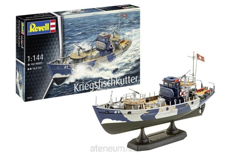 KFK (Kriegsfischkutter) - były łodziami wzorowanymi na małych pomocniczych okrętach wojennych niemieckiej marynarki wojennej z czasów II wojny światowej. Wykorzystywano je w placówkach i służbach bezpieczeństwa na wybrzeżu, we flotyllach myśliwskich na łodzie podwodne, a w okresie powojennym do rozminowywania i rybołówstwa. Plastikowy model do sklejania Revell ( REV-05242 ) nie zawiera w komplecie farb i kleju.