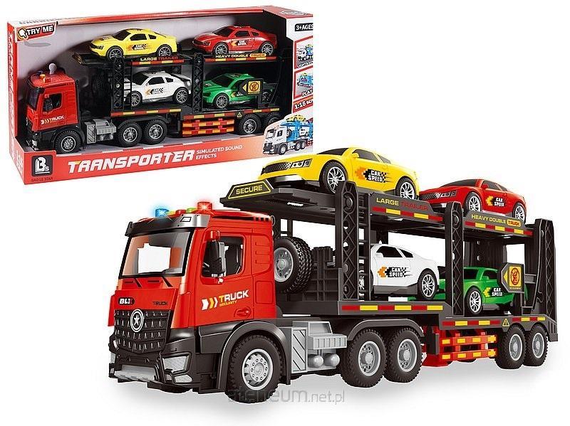 auto laweta z 4 pojazdami, dźwięk, otwierane drzwi, 49x18x9,5cm, W/B