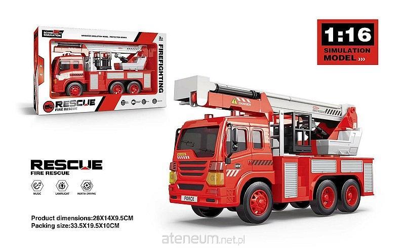 auto straży pożarnej, światło, dźwięk, napęd na koło zam; 33,5x19,5x10cm, W/B