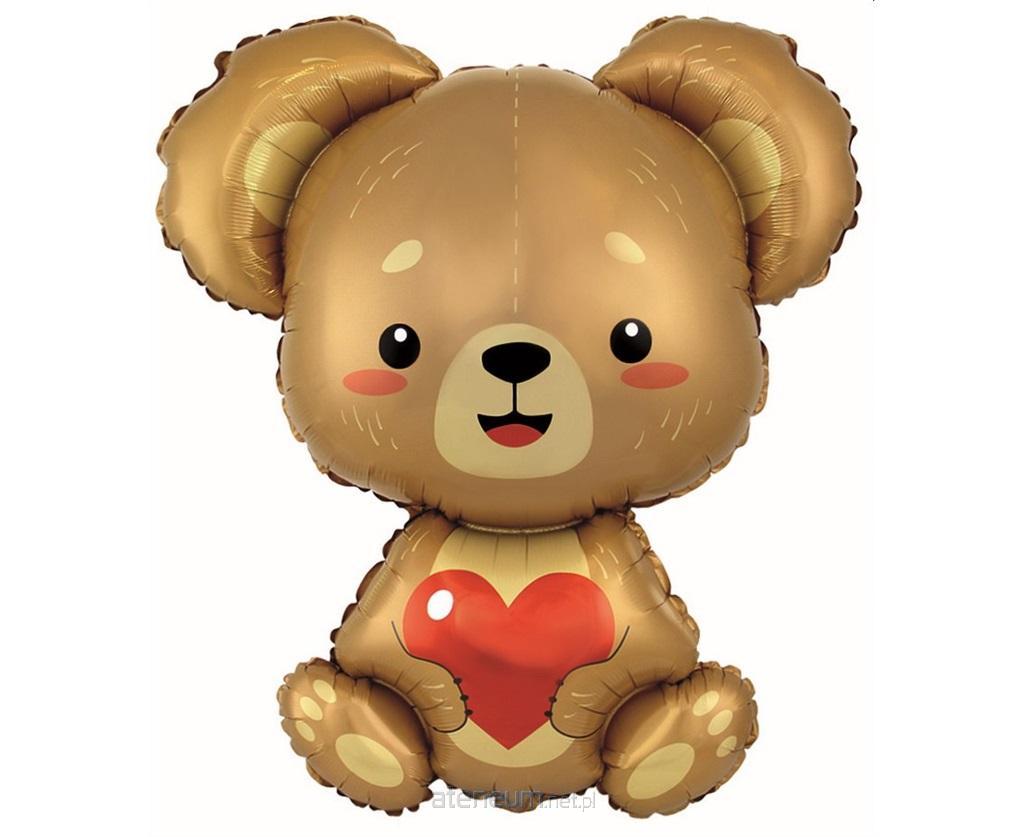 BALON FOLIOWY MIŚ Z SERDUSZKIEM, PAKOWANY