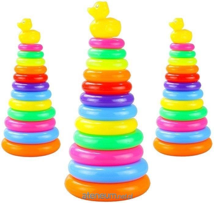 Piramidka z kółek Piramida 40cm Wysoka Układanka Piramidka z kółek to klasyczna zabawka w bajecznie kolorowej wersji. Rozwija nie tylko motorykę i sprawność ruchową dziecka, ale także koncentrację, zdolności manualne, rozpoznawanie wielkości przedmiotów, umiejętność sortowania według rozmiaru, odcieni kolorystycznych, czy według własnej logiki i samodzielnie obranych zasad. Z tą kolorową zabawką wykonaną z bezpiecznego, miękkiego plastiku nasza pociecha nie musi rozstawać się nawet w kąpieli. Umieszczona na szczycie piramidy żółta kaczuszka dodatkowo uatrakcyjnia całą zabawę. Piramidka z kółek to pozycja, której na pewno nie może zabraknąć pośród zabawek każdego dziecka. To inwestycja na lata, która nie tylko otworzy dziecku świat wyobraźni, ale rozwinie je na wielu płaszczyznach. To sprawdzona zabawka, jaką bawili się nasi dziadkowie czy rodzice, a teraz mogą cieszyć się jej możliwościami nasze dzieci. Wymiary zabawki: - Wysokość całkowita - 40 cm - Średnica podstawy - 18 cm - Średnica najmniejszego kółka - 7,5 cm