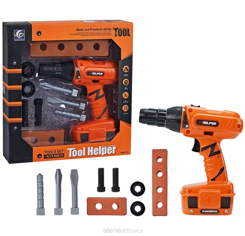 Zestaw małego majsterkowicza z wiertarką oraz akcesoriami.