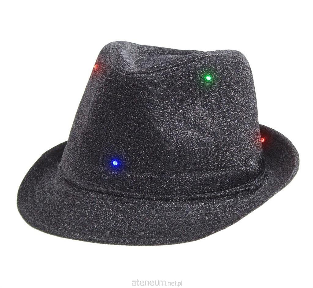 Kapelusz posiada diody świecące w trzech kolorach jednocześnie.