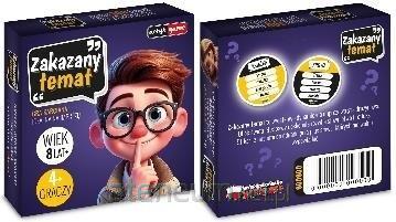 Gra "Zakazany temat" to świetna rozrywka dla całej rodziny. Wylosuj słowo i opisz je tak, by inni je odgadli. Ale pamiętaj! Niektóre słowa są zakazane...Zabawa polega na tym, by w określonym czasie opisać dany wyraz, unikając zakazanych słów, wypisanych na karcie. Zadaniem drugiej osoby jest odgadnięcie, o jaki wyraz chodzi. W zestawie: 51 dwustronnych kart z 102 zakazanymi słowami do odgadnięcia, instrukcja.