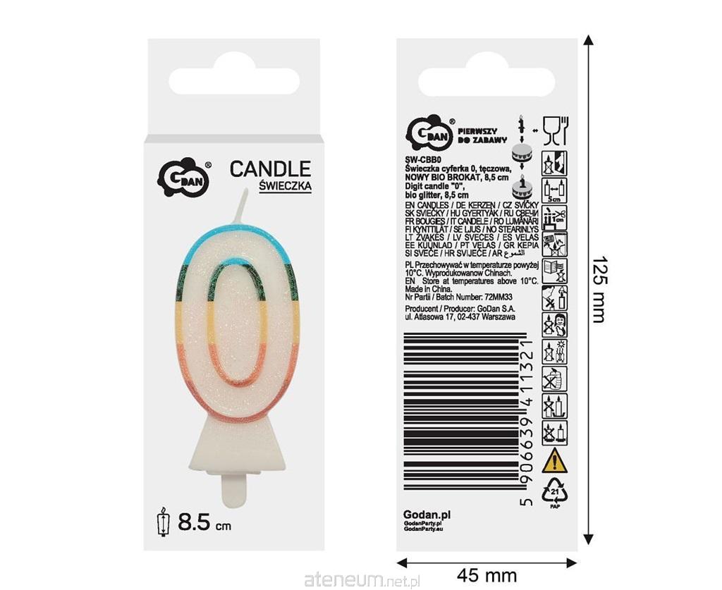 ŚWIECZKA CYFRA 0, TĘCZOWA, BIO BROKAT