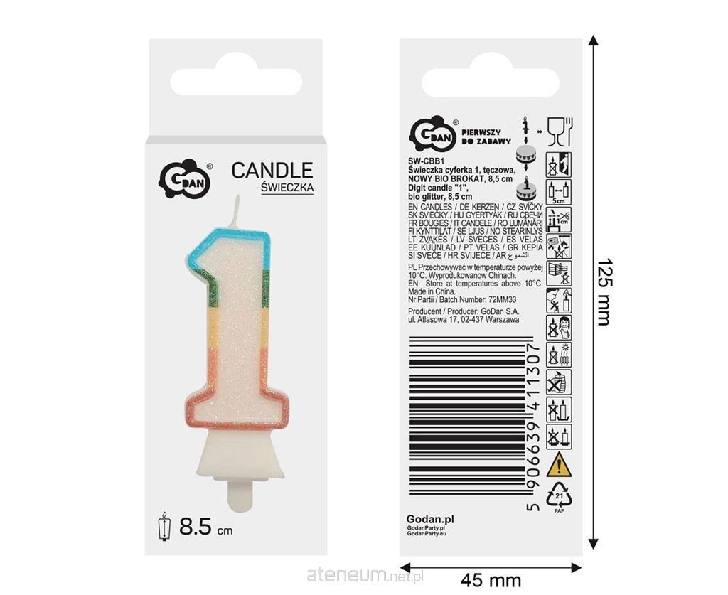 ŚWIECZKA CYFRA 1, TĘCZOWA, BIO BROKAT