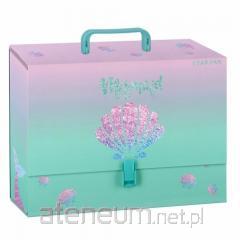 Wykonany z kolorowej folii PVC. Środek usztywniony tekturą. Wyposażony w sprężysty mechanizm zaciskowy służący do przytrzymywania kartek. Kieszeń na wewnętrznej stronie okładki i miejsce na długopis. Teczka zamykana. Format A4.