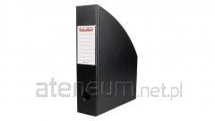 Wykonany z kolorowej folii PVC, wewnątrz usztywniony tekturą. Format A4 o ściętych bokach. Wyposażony w kieszonkę z wymienną etykietą opisową na grzbiecie. Okrągłe wycięcie na palec pozwalające na łatwe wysuwanie pojemnika. Szerokość grzbietu 10 cm.