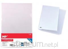 Przód i tył z przezroczystej twardej folii PVC typu 0,20. Zgrzew w kształcie litery "L". Wycięcie na palec. Zaokrąglony prawy górny róg. Format A4.