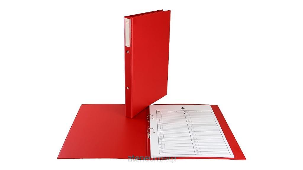 Teczka wykonana z wytrzymałej folii PVC, wewnątrz usztywniona tekturą. Wewnątrz zamontowano mechanizm na 2 ringi umożliwiający wpięcie dokumentów. Wyposażona w uniwersalne, papierowe przekładki A, B, C, D, E bez opisu kategorii. Szerokość grzbietu: 2 cm. Na grzbiecie kieszeń z etykietą do opisu zawartości.