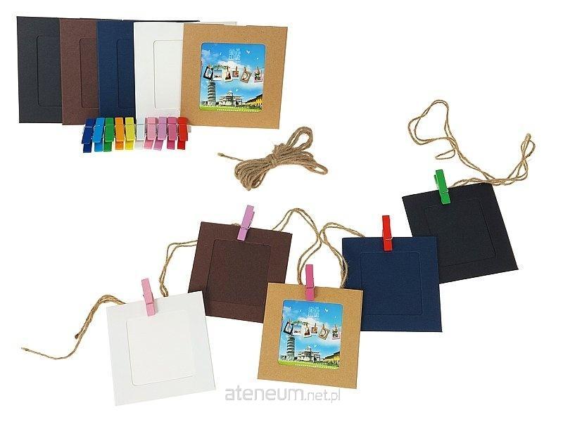 zestaw 10 ramek na zdjęcia, ze sznurkiem i klamerką; 9,5x9,5cm, PPB