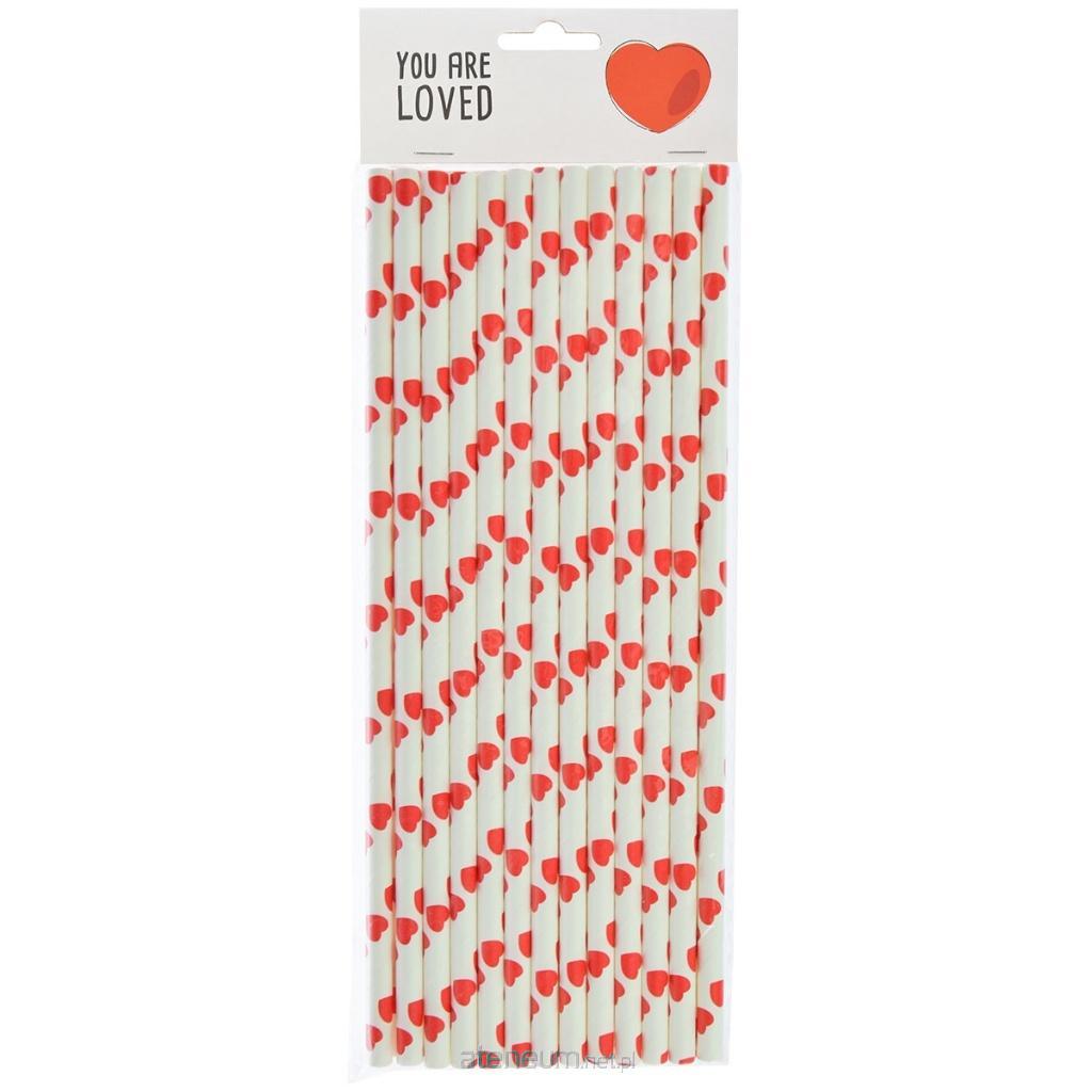 Słomki papierowe z nadrukiem serduszek o długości ok 20cm. 12 szt. w opakowaniu. Produkt certyfikowany FSC.